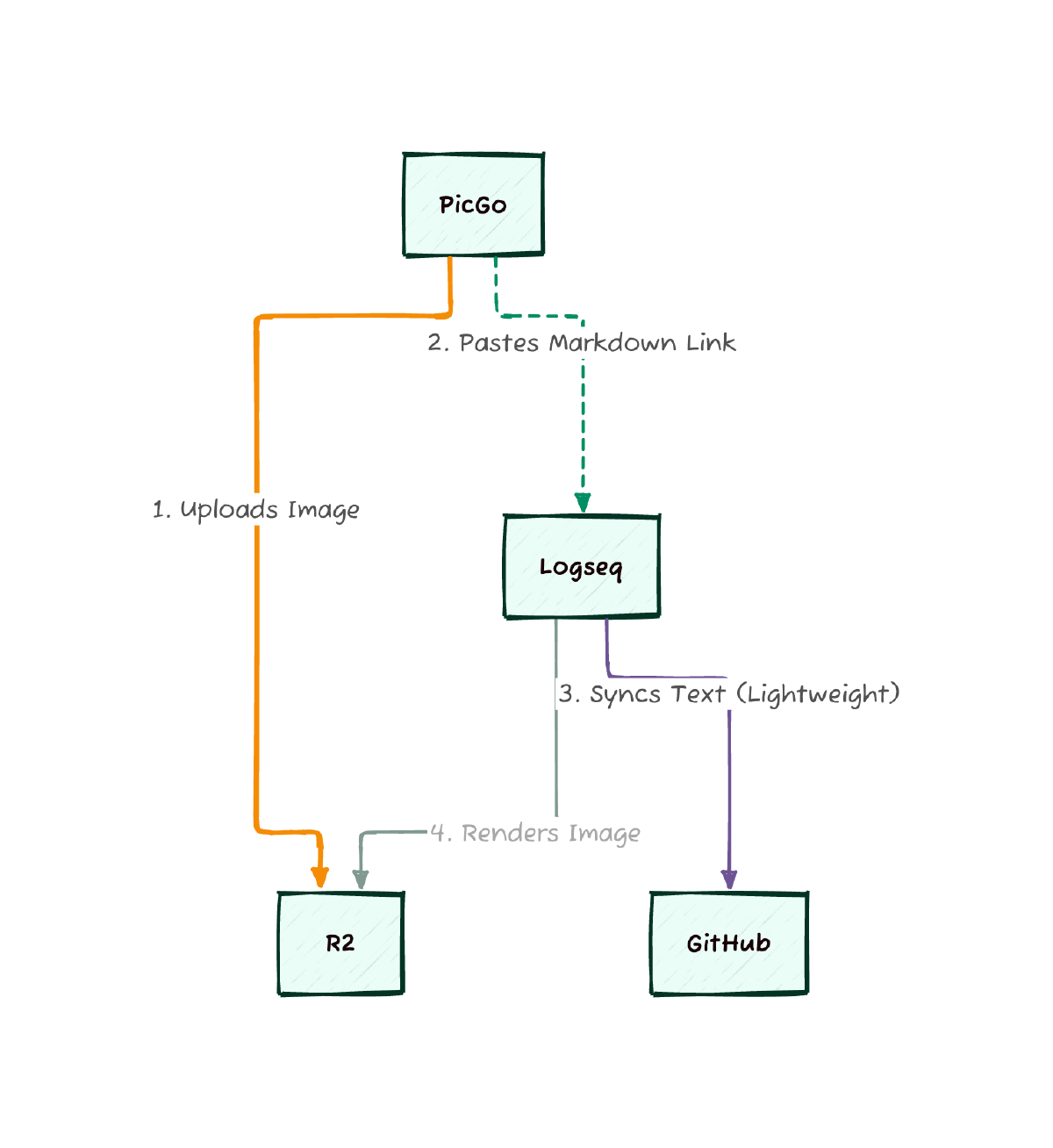 This setup keeps my logseq repository lightweight (text only) and makes sharing notes significantly easier since the assets are already online.